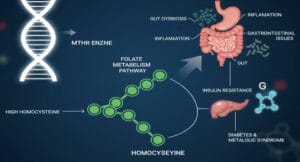 Introduction Type 2 diabetes mellitus (T2DM), gestational diabetes, metabolic syndrome, obesity, fatty liver disease, and inflammatory bowel disease may seem like distinct clinical entities. But beneath their varied presentations lies a biochemical thread that connects them: homocysteine metabolism. The methylenetetrahydrofolate reductase (MTHFR) enzyme—often discussed in relation to cardiovascular or neurological disease—also plays a surprisingly important